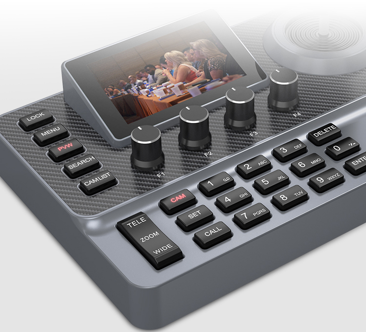 또한 3인치 LCD를 장착하고 있어 편리하게 메뉴를 설정할 수 있으며, 카메라의 RTSP 스트림을 받아 프리뷰 영상을 보여 줄 수 있어 여러 대의 IP 카메라를 제어할 때 매우 효율적이다. 한편 C1은 [SEARCH] 버튼 한 번 누르는 것만으로도 VISCA over IP 및 ONVIF 지원 장치들을 모두 검색해 준다. 그리고 4개의 기능키 (F1 ~ F4)에 다양한 제어 기능을 할당할 수 있어 쉽고, 빠르고, 편리하게 PTZ 카메라들을 제어할 수 있다.